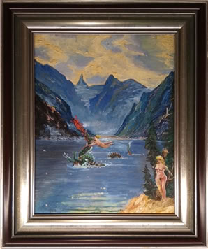 Der Königssee ist ein weit verbreitetes Motiv der dekorativen Malerei – vielfach kopiert, leicht variiert, oft für den Weiterverkauf gedacht.