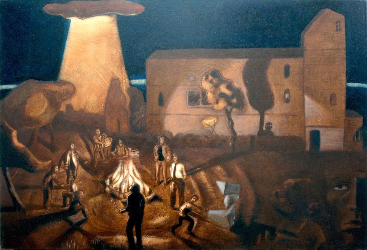 „Jan Böttcher greift eine Form des narrativen Realismus auf, in der sich soziale Themen mit grotesken und fantastischen Elementen verbinden. Die Szenen erinnern an Rituale, in denen rätselhafte Objekte oder nichtmaterielle Erscheinungen in die moderne Realität eingefügt werden.“
